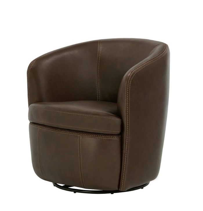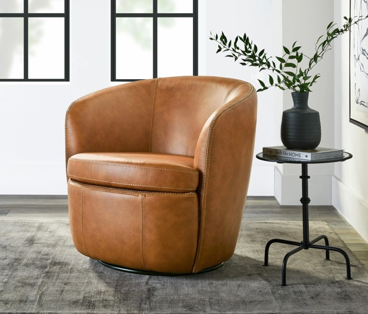 Our timelessly chic Barrel leather swivel chairs feature a classic yet versatile silhouette that fits effortlessly into almost any room. This low-profile barrel seat is wrapped in glove soft leather, offering 360-degree swivel action to allow for quick pivots in any direction. Bold decorative stitching elevates this chair to the next level, securing its place as a tried and true staple piece in your living space.